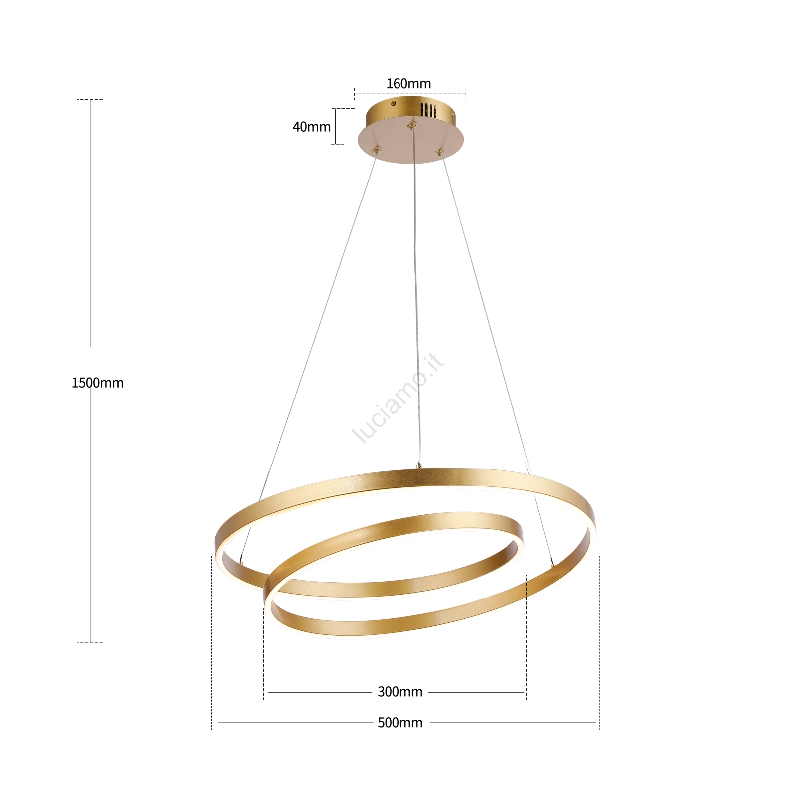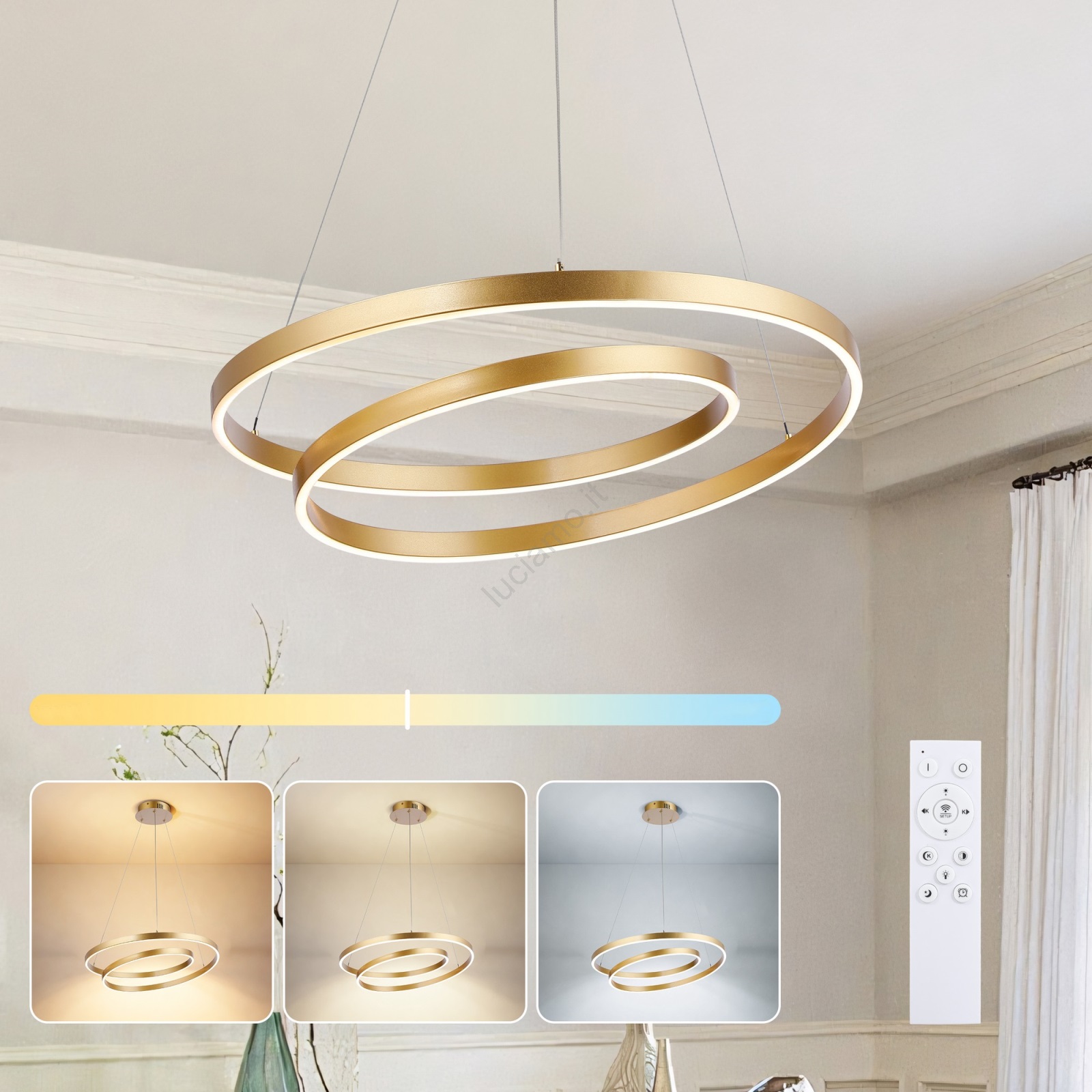 • Brilagi - Lampadario LED dimmerabile a cavo TWISTER LED/48W/230V 3000-6000K Ø 50 cm oro + telecomando