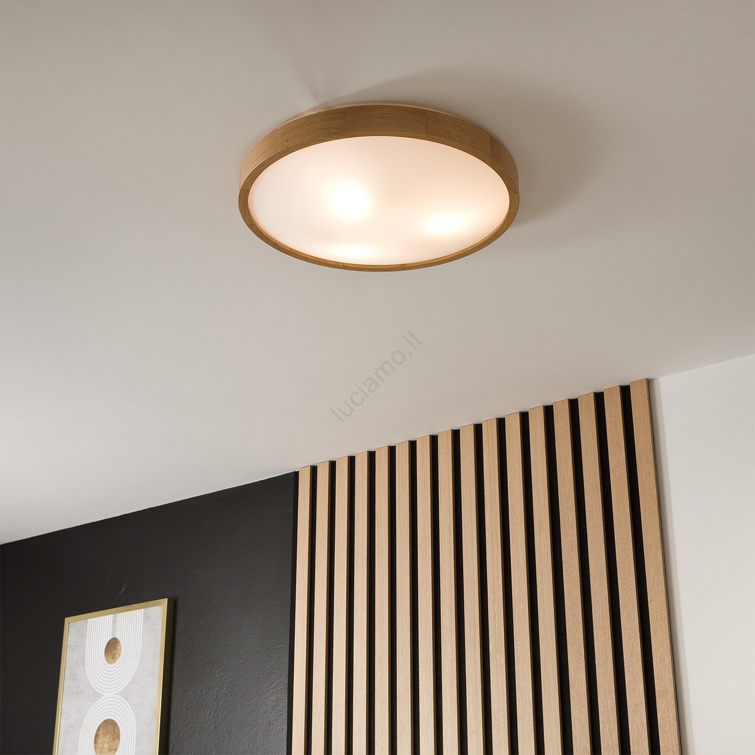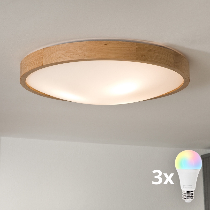 Brilagi - Plafoniera LED RGBW dimmerabile CARVALHO SLIM 3xE27/15W/230V 2700-6500K Wi-Fi rovere Ø 47 cm