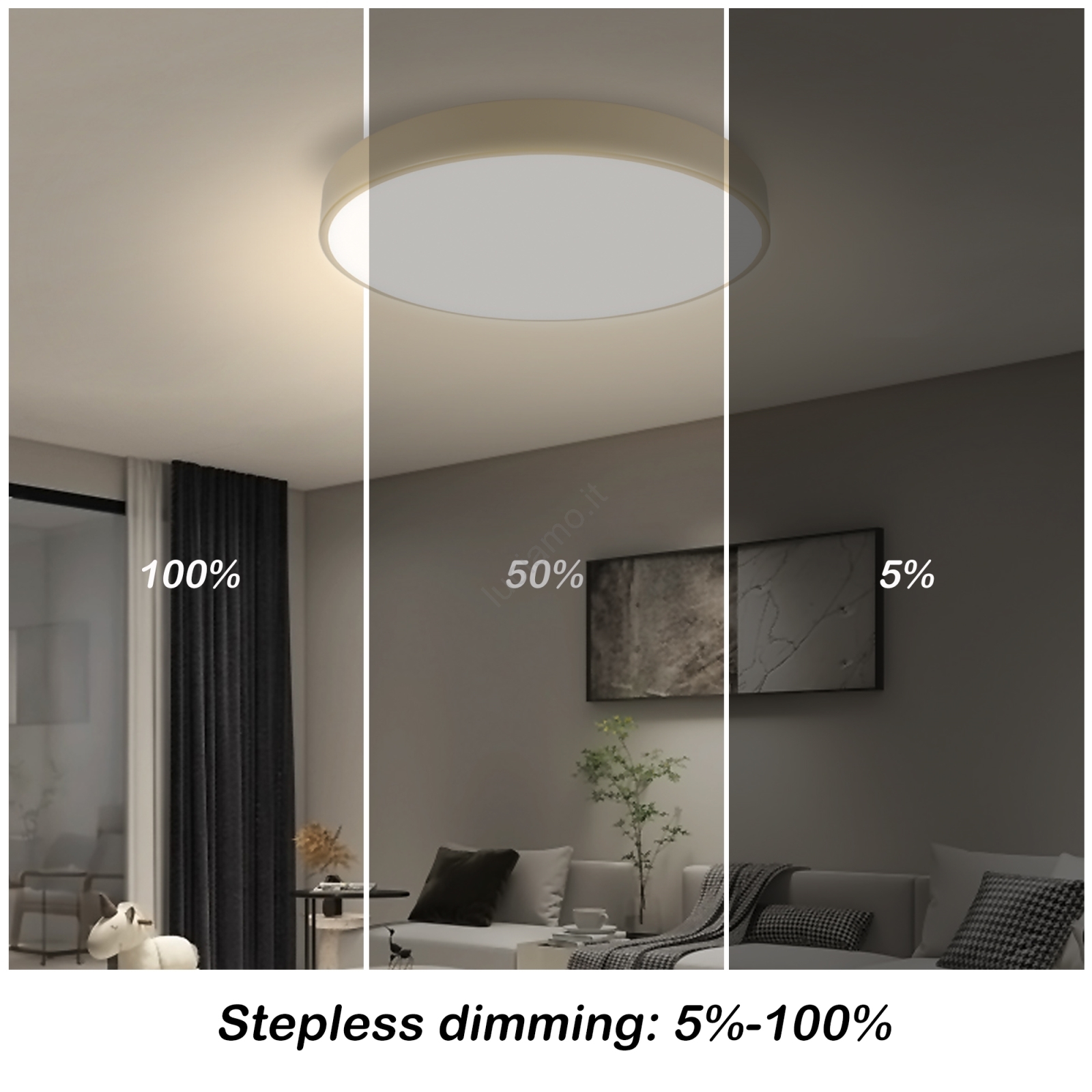 • Lampada da soffitto LED che può essere comodamente controllata tramite telecomando o tramite smartphone.