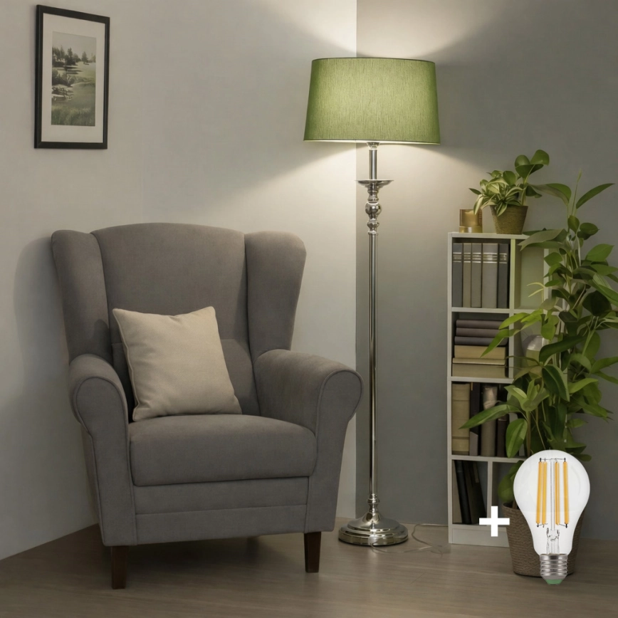 Brilagi - Piantana LED CERIA 1xE27/60W/230V Ø 45 cm cromo lucido/verde caratterizza un design gradevole e funzionale. Per la lampada è adatta una lampadina con attacco E27. Qui puoi acquistare altre lampadine a prezzi vantaggiosi. Avrai un'aggiunta interessante alla tua casa.