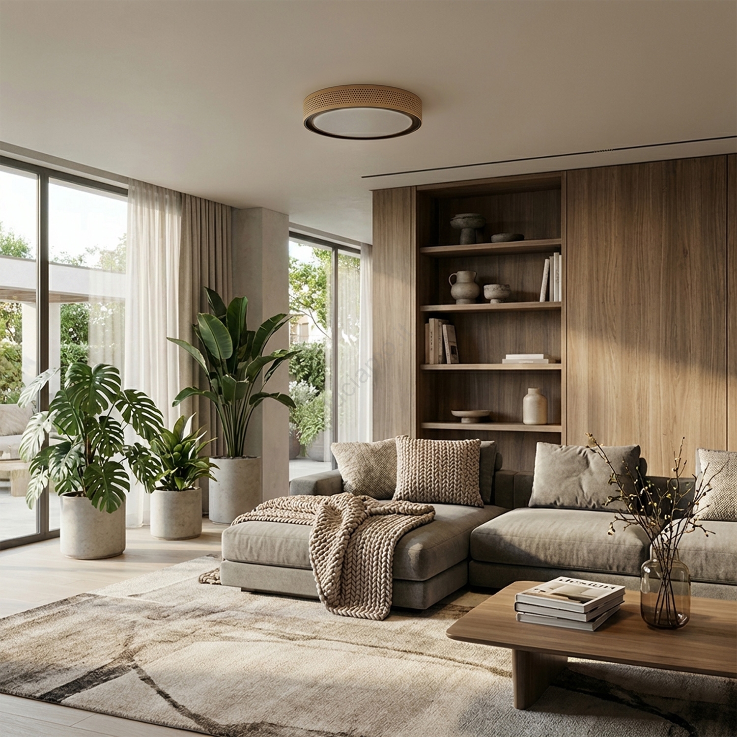 • Brilagi - Plafoniera LED dimmerabile FLOCO LED/48W/230V Ø 40 cm finitura effetto legno/bianco + telecomando incluso