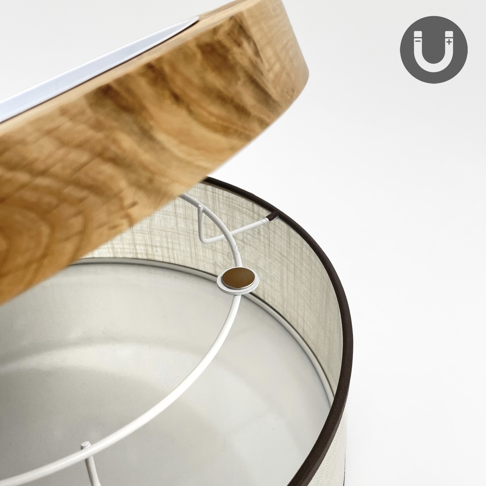 • Grazie ai magneti posti nella parte superiore, il paralume si installa in modo semplice e molto rapido.