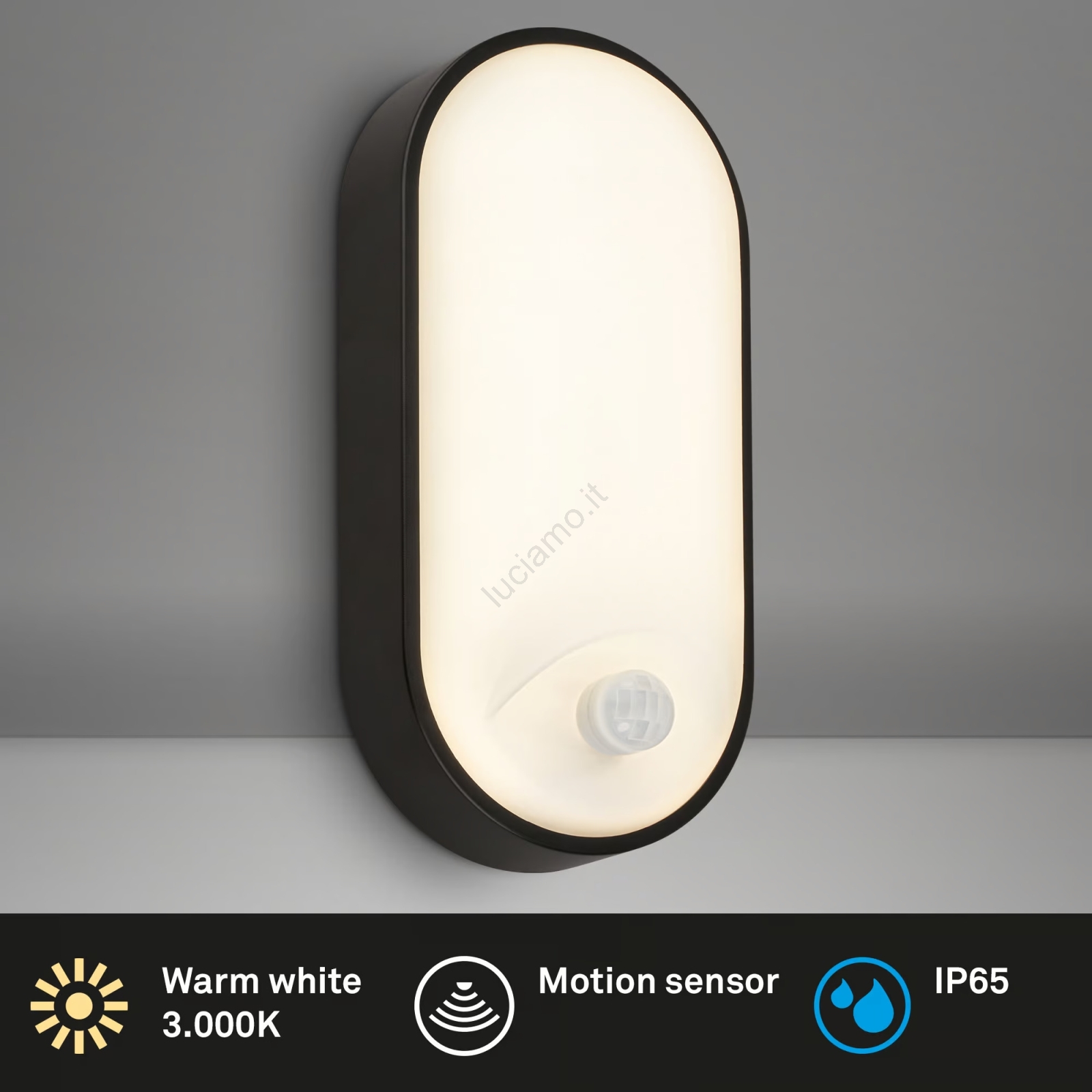 Brilo - Applique da esterno LED con sensore di movimento e sensore crepuscolare RUCH LED/12W/230V IP65 nera