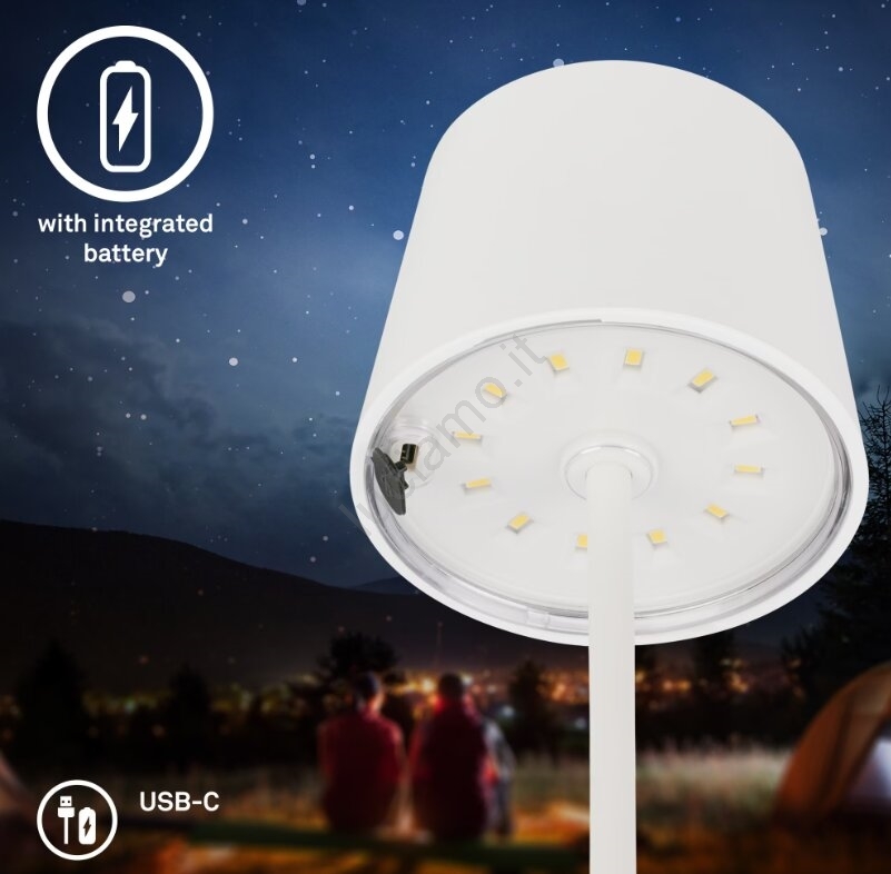 • Briloner 7423016 - Lampada da tavolo ricaricabile da esterno dimmerabile LED/2,6W/5V 2000mAh IP44 bianco
