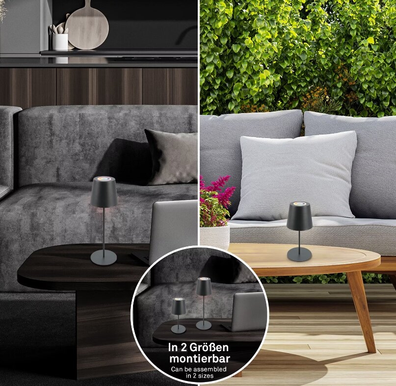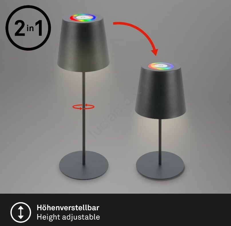 • Briloner 7507015 - Lampada da tavolo ricaricabile per esterni dimmerabile LED RGB 2 in 1 LED/2,5W/5V IP44 1200 mAh antracite