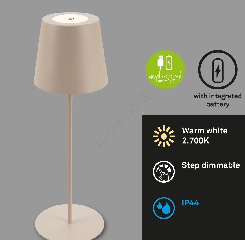Briloner 7508011 - Lampada da tavolo ricaricabile dimmerabile per esterni 2 in 1 LED/2,5W/5V IP44 1200 mAh beige