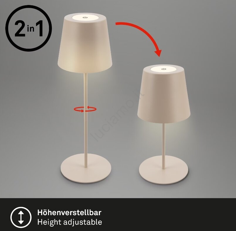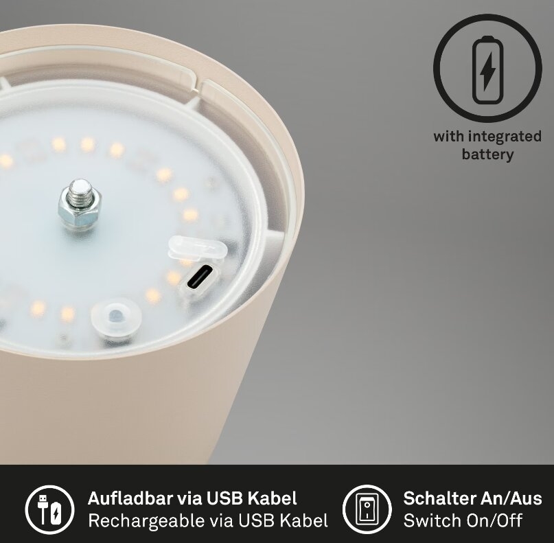 • Briloner 7508011 - Lampada da tavolo ricaricabile dimmerabile per esterni 2 in 1 LED/2,5W/5V IP44 1200 mAh beige