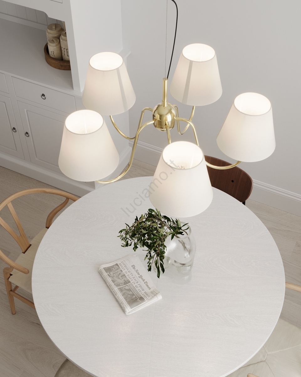 ByRydens - Lampadario a sospensione con cavo LYNF 5xE14/8W/230V ottone/bianco