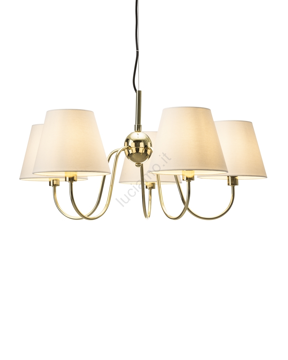 ByRydens - Lampadario a sospensione con cavo LYNF 5xE14/8W/230V ottone/bianco caratterizza un design gradevole e funzionale. Per la lampada è adatta una lampadina con attacco E14. Qui puoi acquistare altre lampadine a prezzi vantaggiosi. Avrai un'aggiunta interessante alla tua casa.