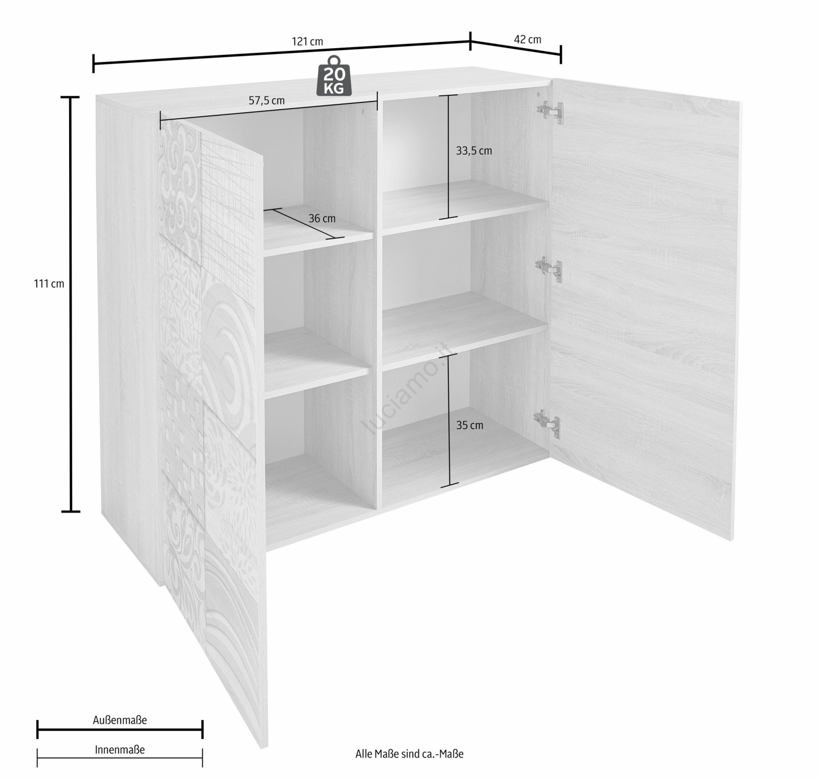 • Scatola n. 2: 8,2 x 118 x 64 cm (30 kg).