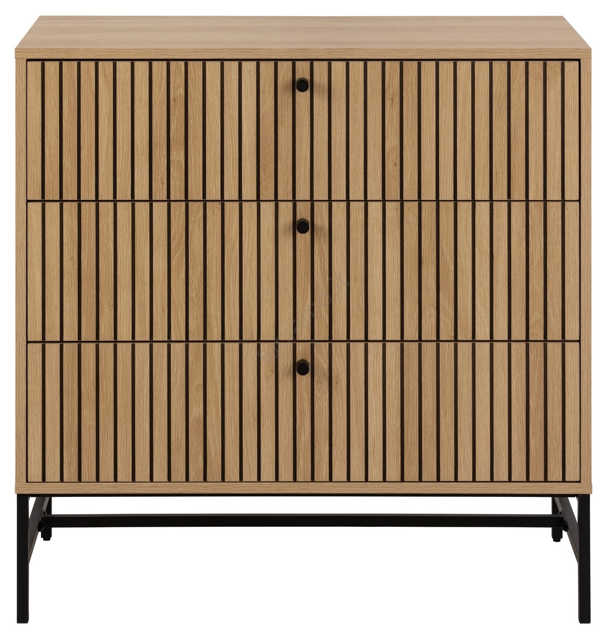 • Questa cassettiera in finitura rovere con frontale a lamelle donerà al vostro corridoio stile e praticità.