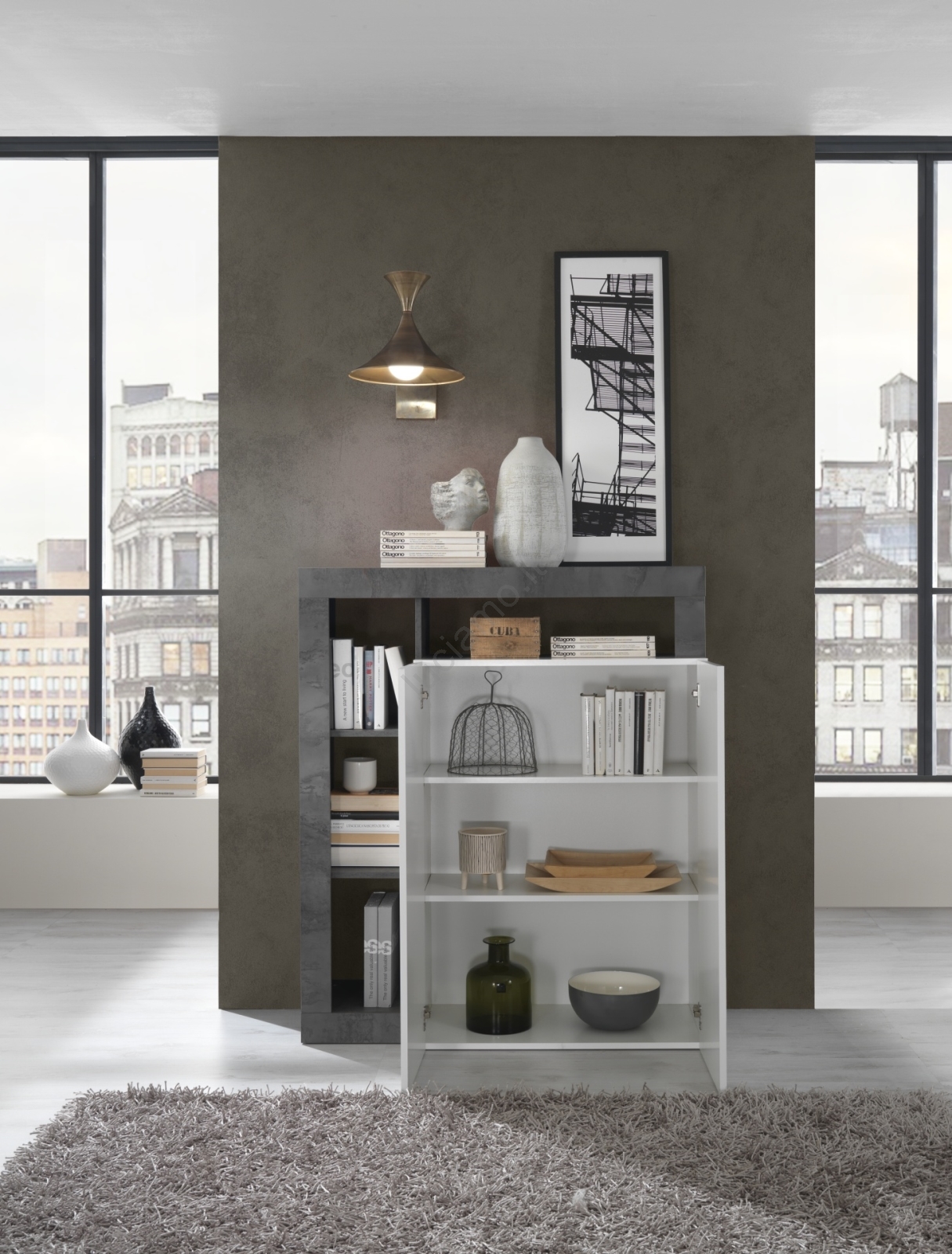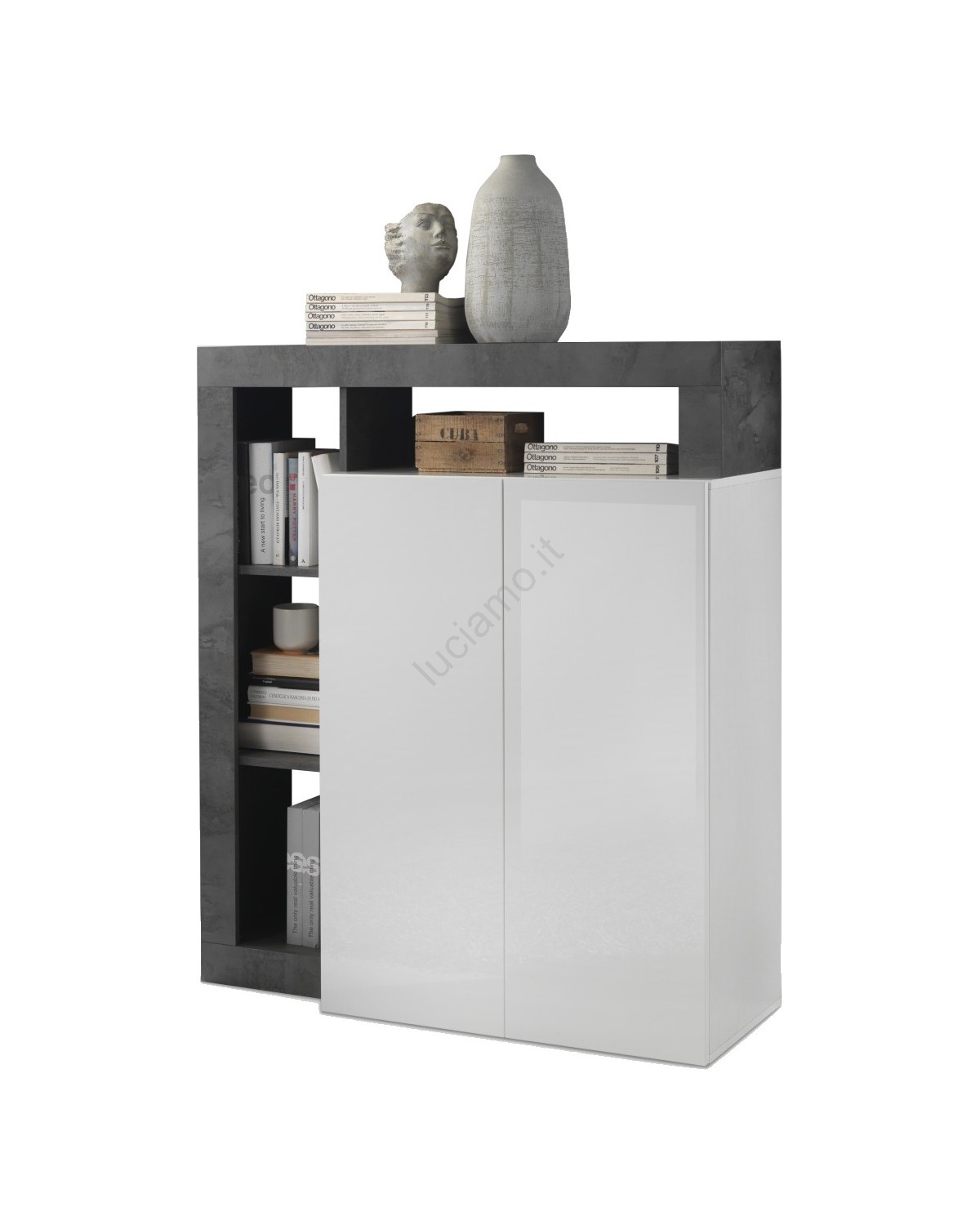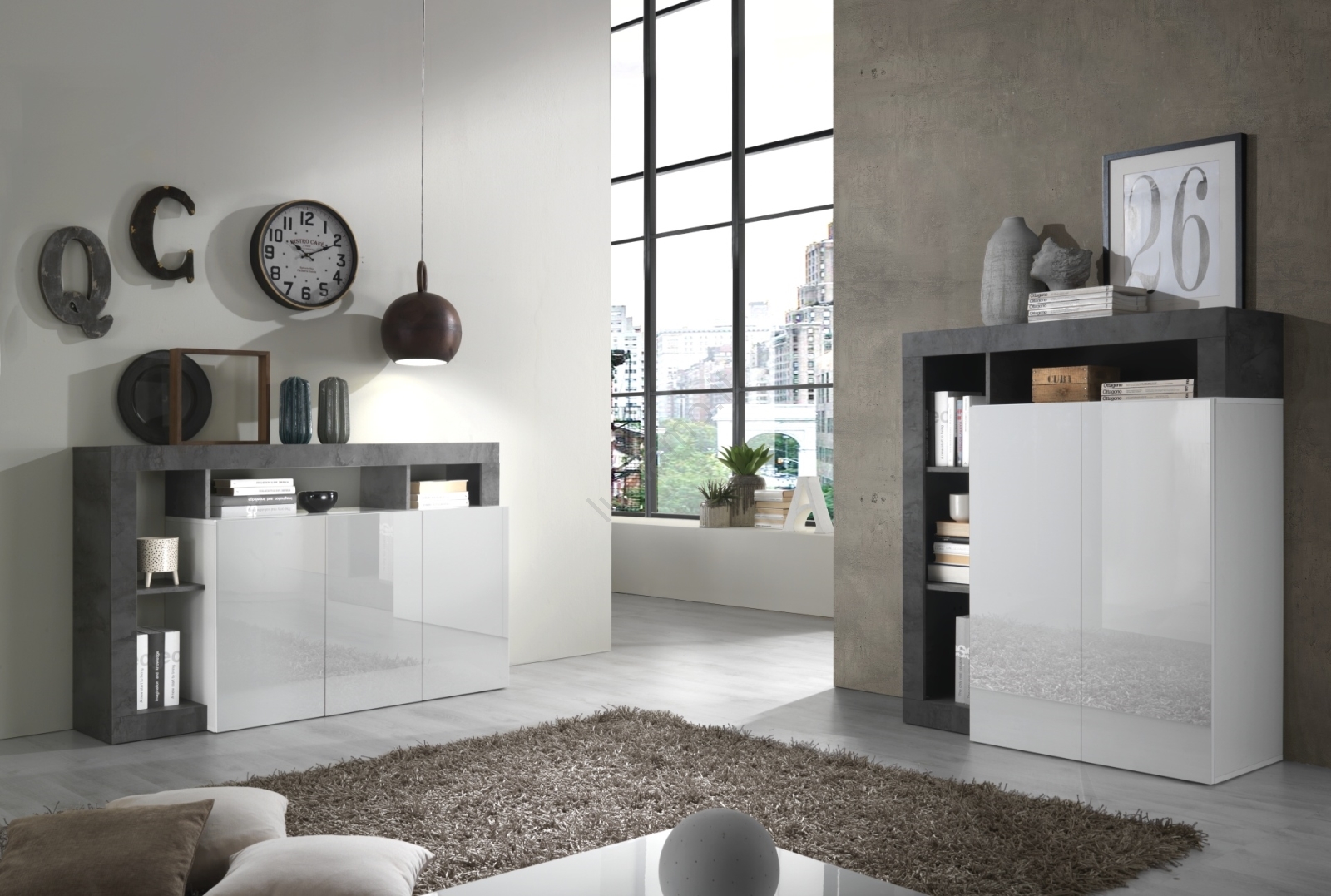 • Cassettiera LENOR bianco/grigio effetto cemento