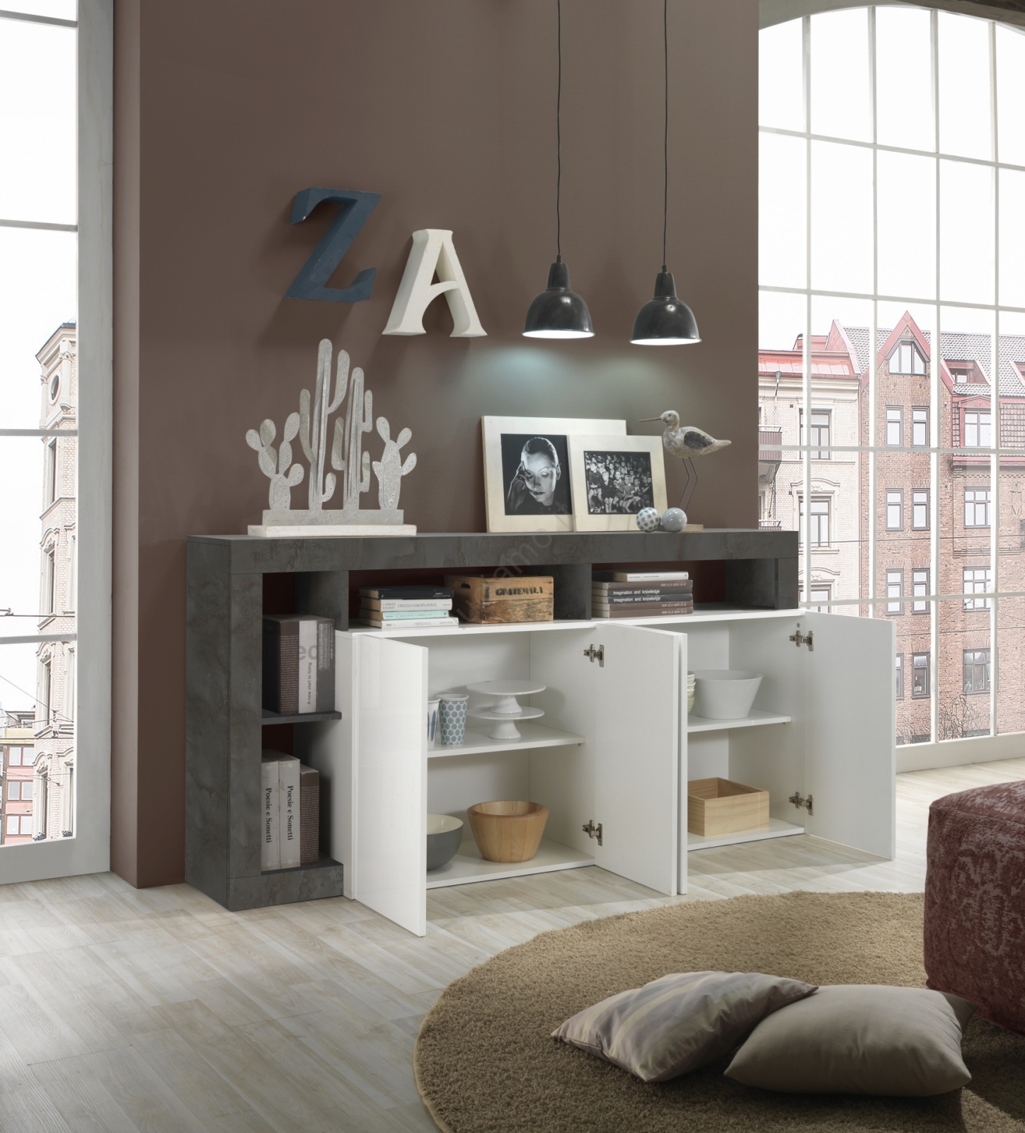 • Cassettiera LENOR bianco/grigio effetto cemento