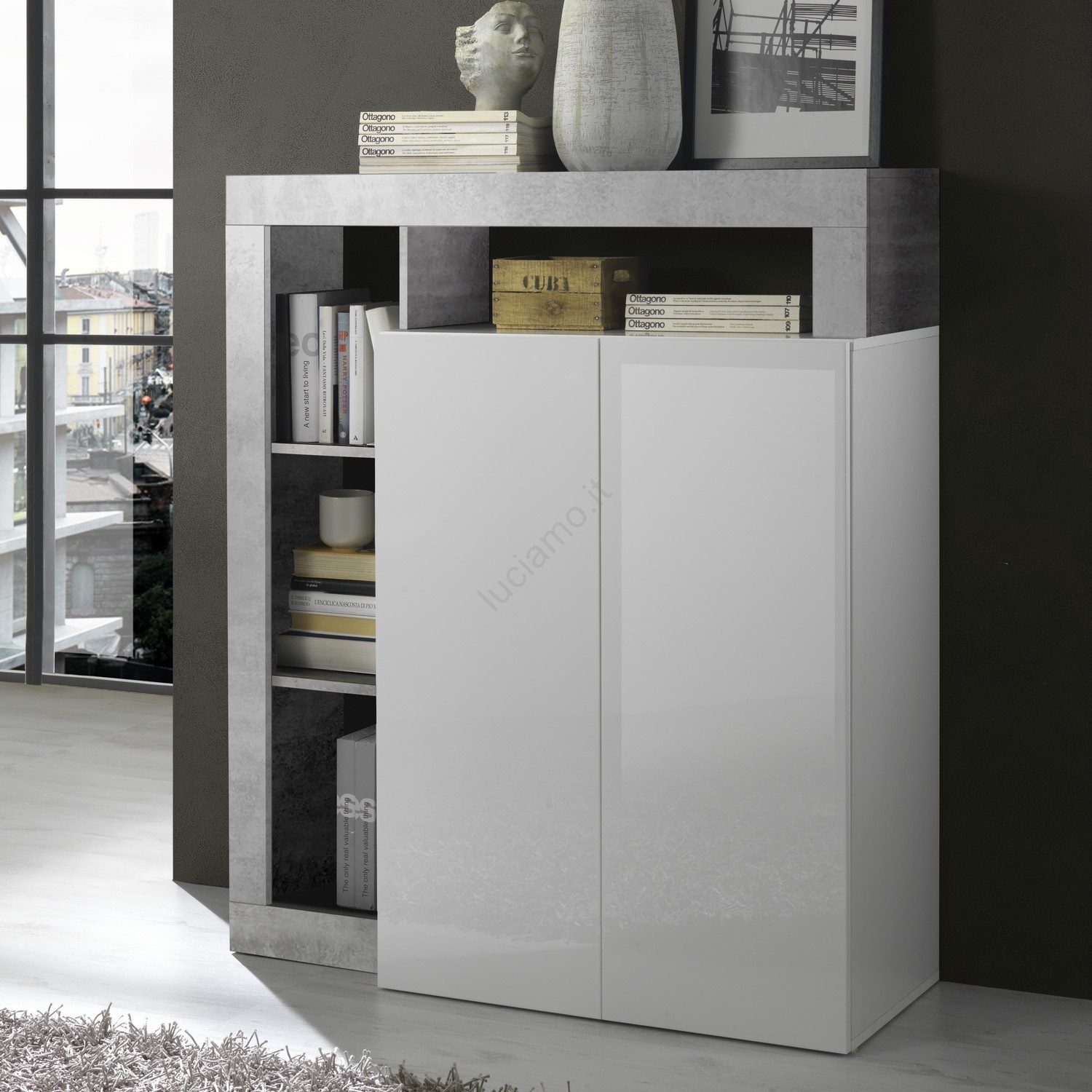 Cassettiera LENOR bianco/grigio effetto cemento