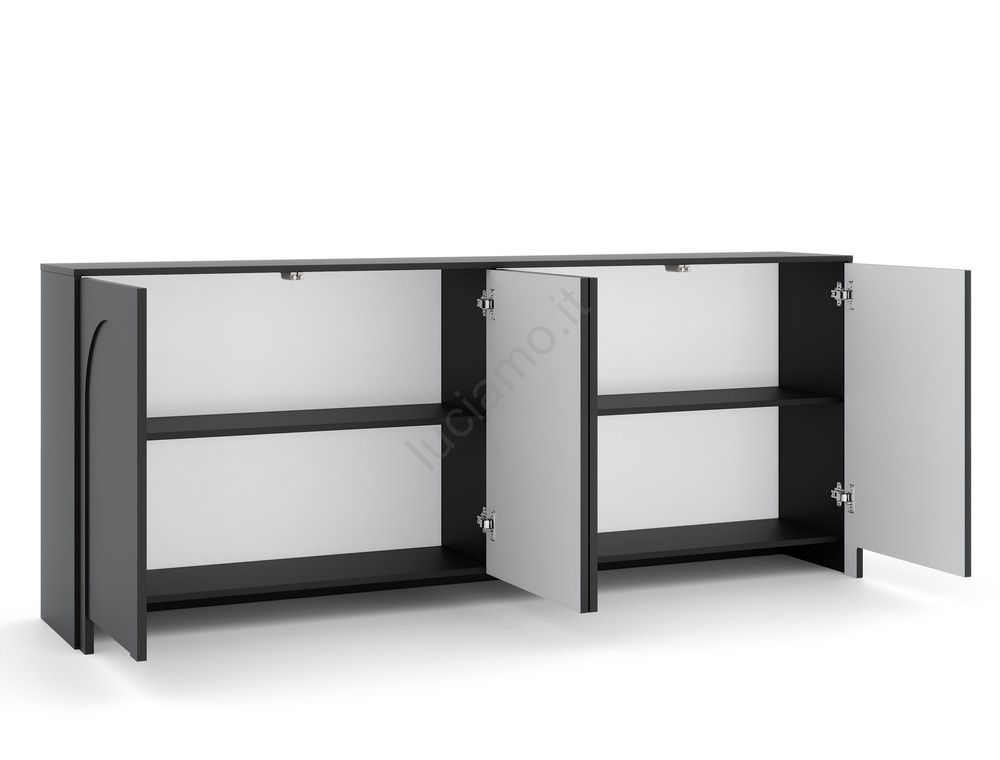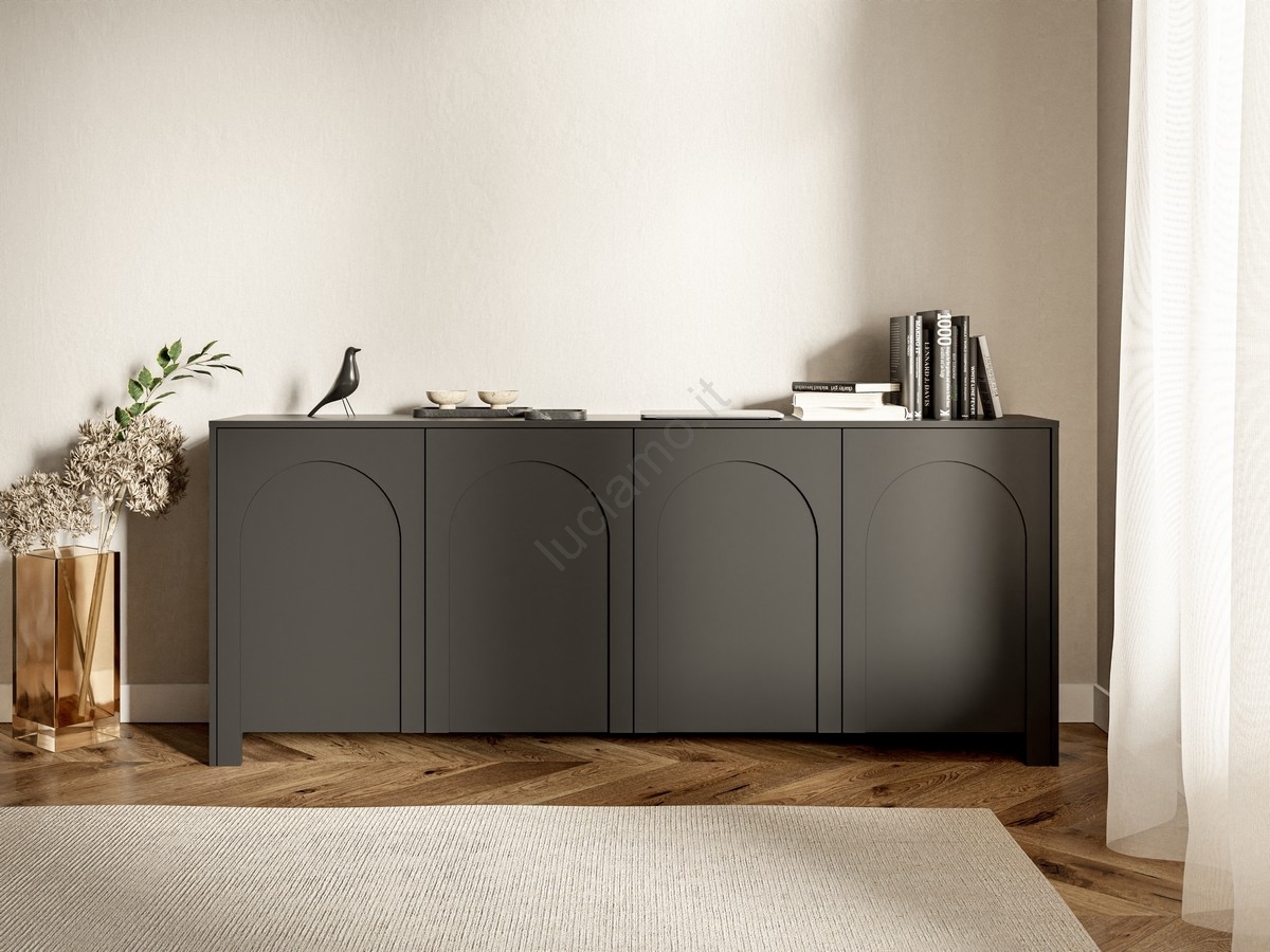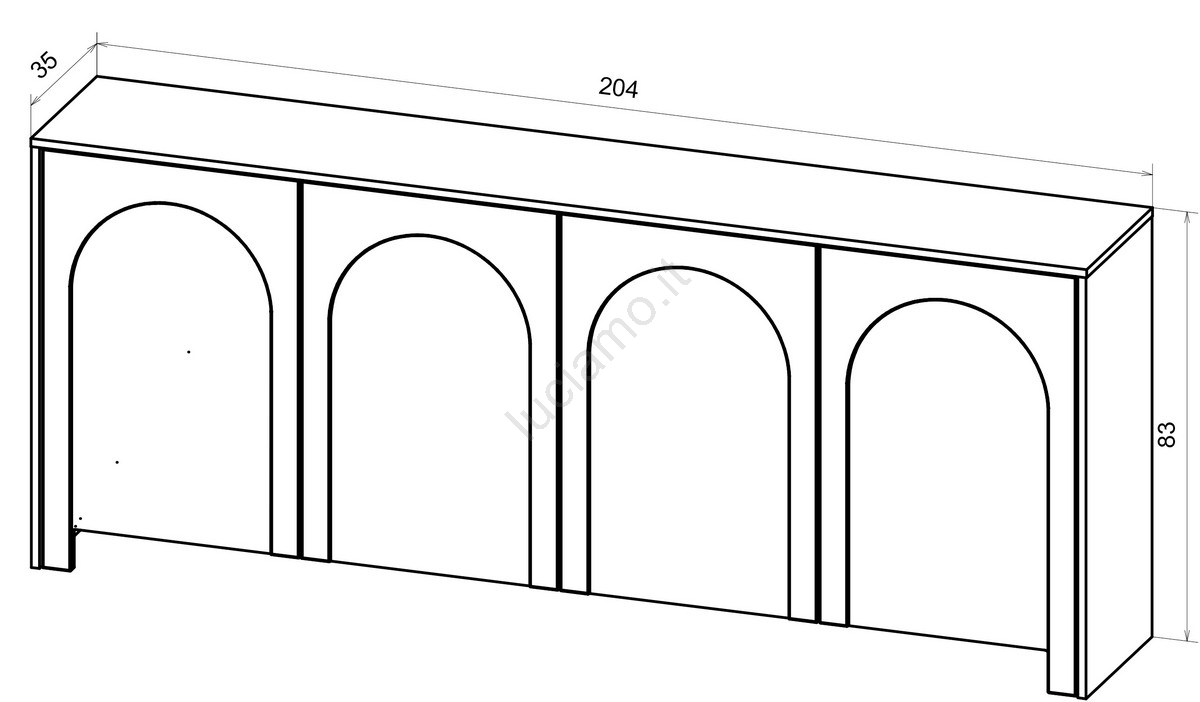 • È dotato di quattro ante, ciascuna decorata con un delicato motivo ad arco per un effetto visivo raffinato.