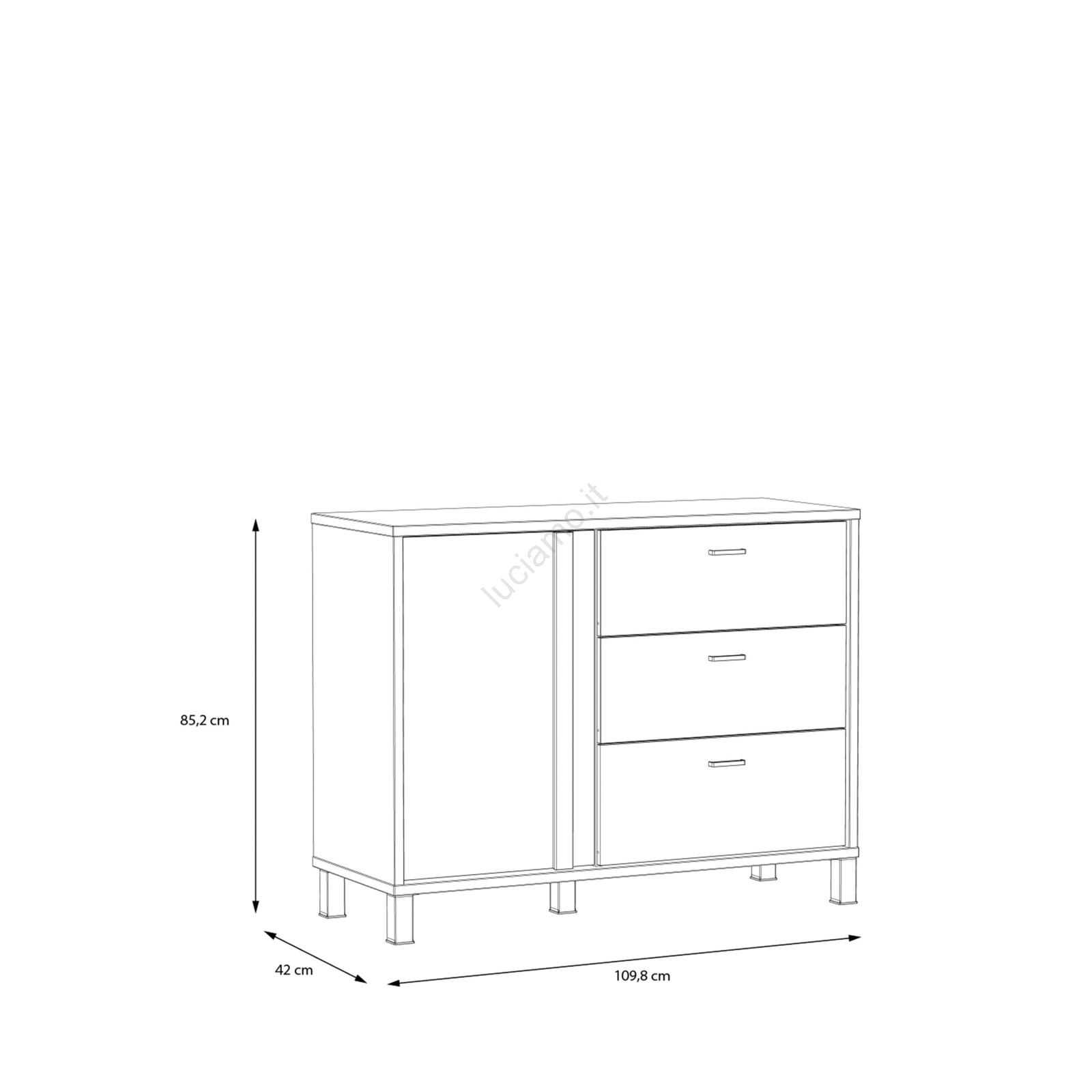 • Grazie ai cassetti e all'anta, offre un generoso spazio di archiviazione per organizzare gli oggetti d'uso quotidiano.