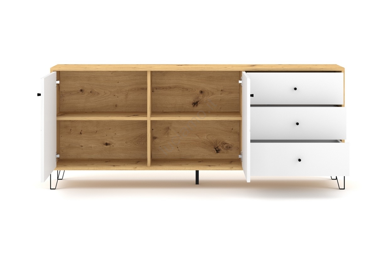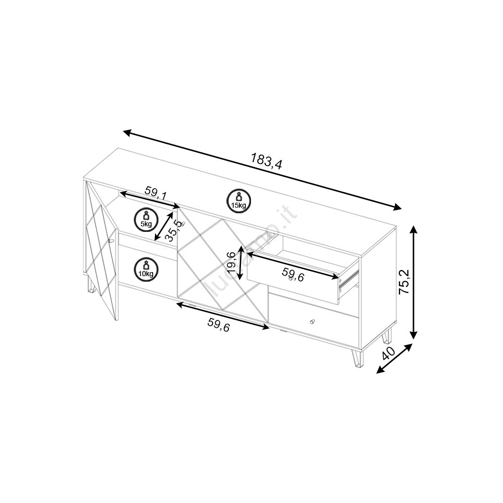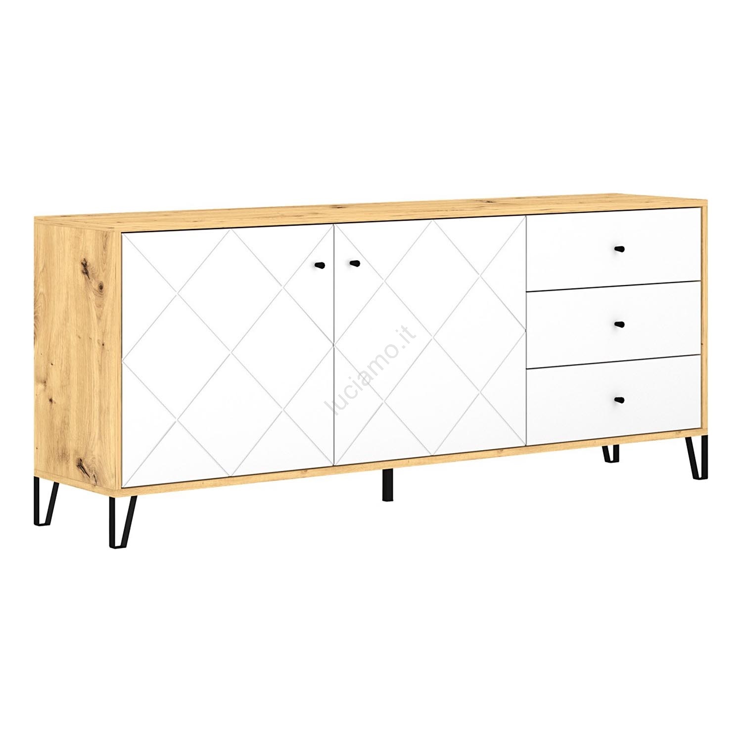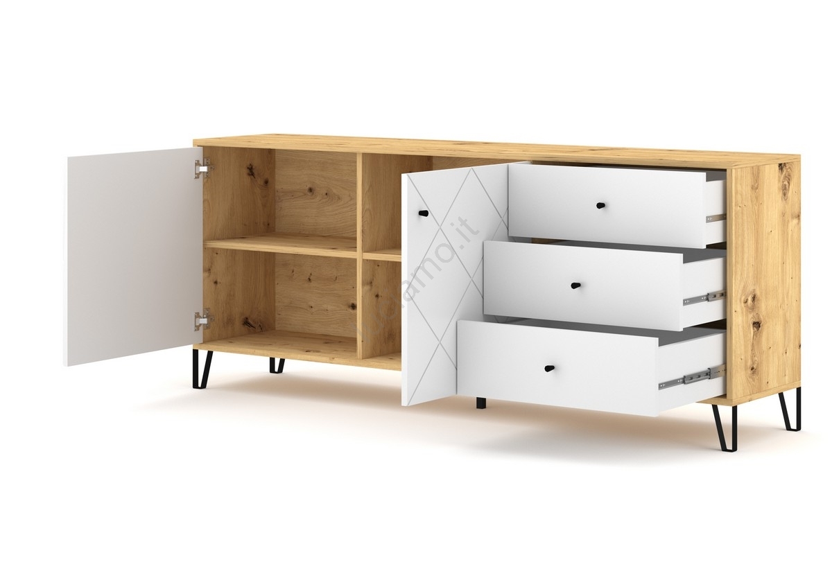 • Presenta due ante sul lato sinistro e tre cassetti sul lato destro, per una sistemazione ordinata degli oggetti.