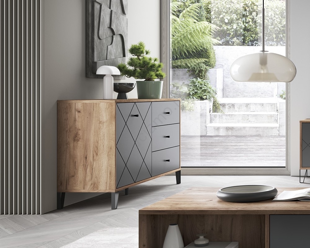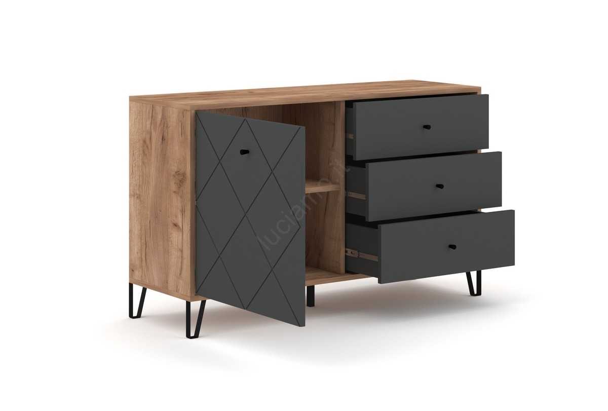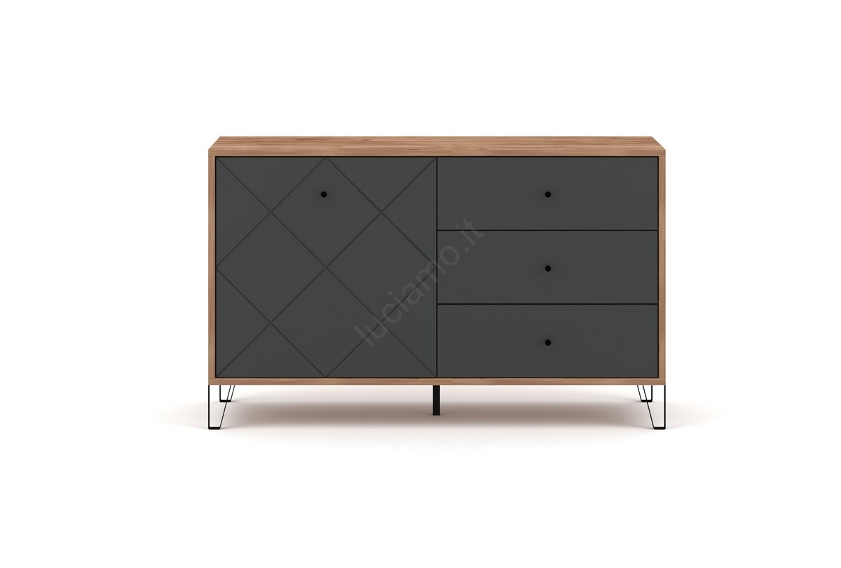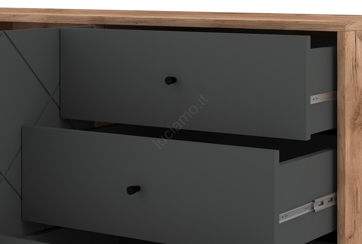 • Presenta un'anta sul lato sinistro e tre cassetti sul lato destro, per un'organizzazione semplice e ordinata degli oggetti.