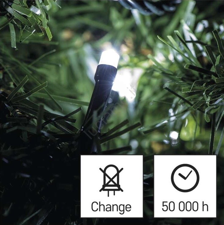 • Catena luminosa LED da esterno 180 LED/8 modalità 23 m IP44 bianco freddo