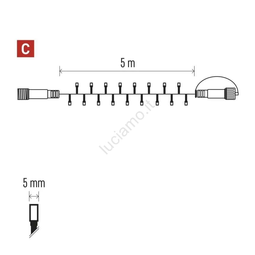 • Lunghezza del cavo illuminato: 5 m.