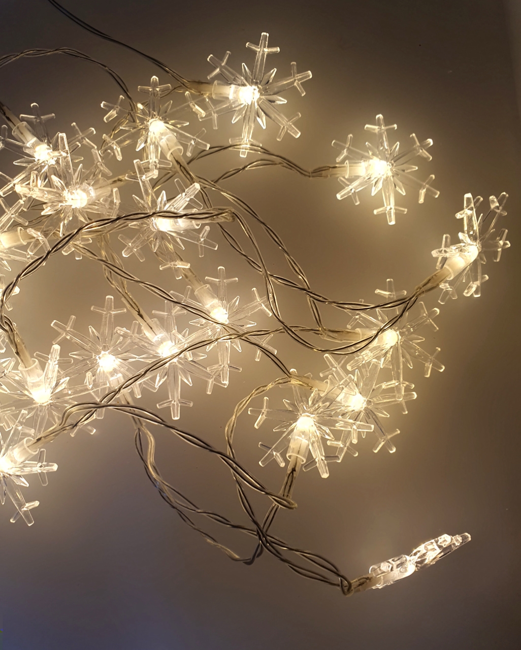 Catena luminosa natalizia LED per esterni 20xLED/2xAA 2,2 m IP44 bianco caldo con fiocchi di neve