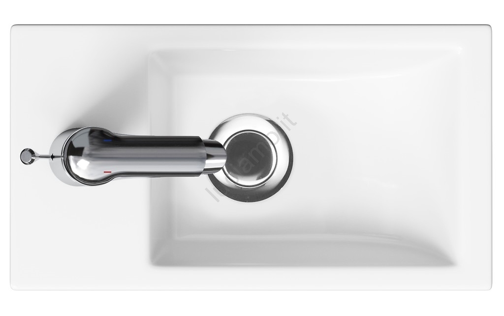 • Lavabo moderno ed elegante con troppopieno e foro per miscelatore.
