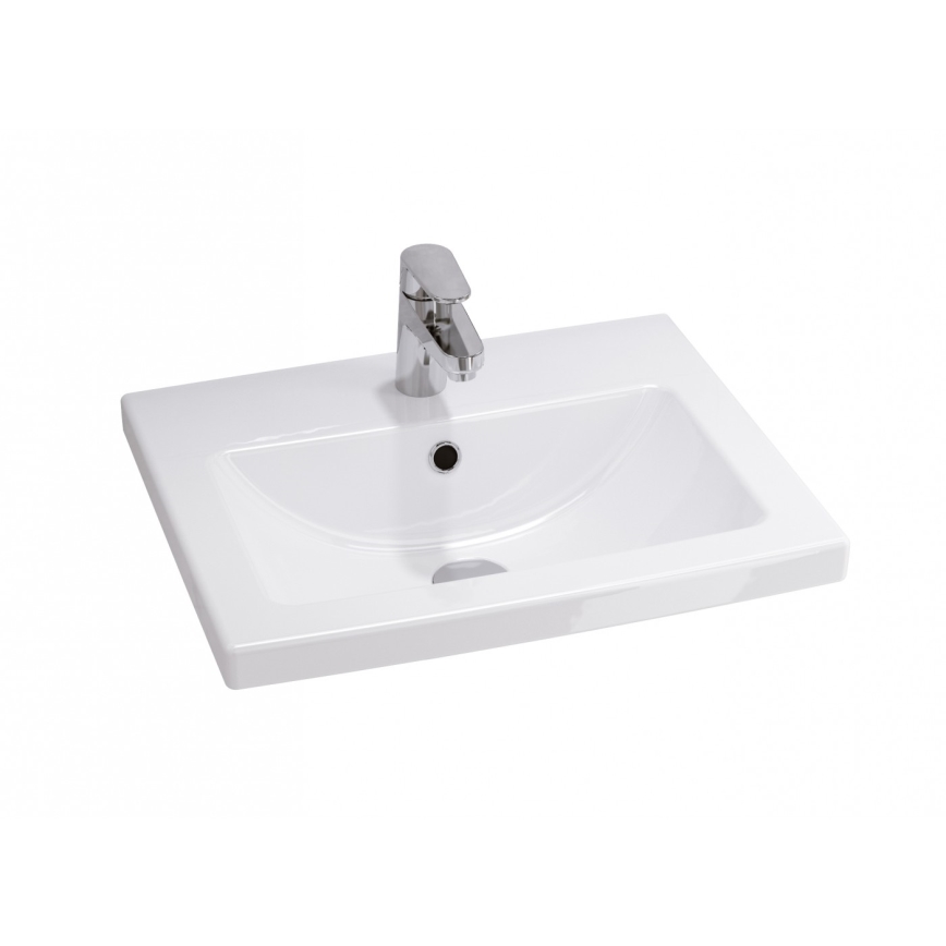 • Lavabo moderno ed elegante con troppo pieno e foro per miscelatore.