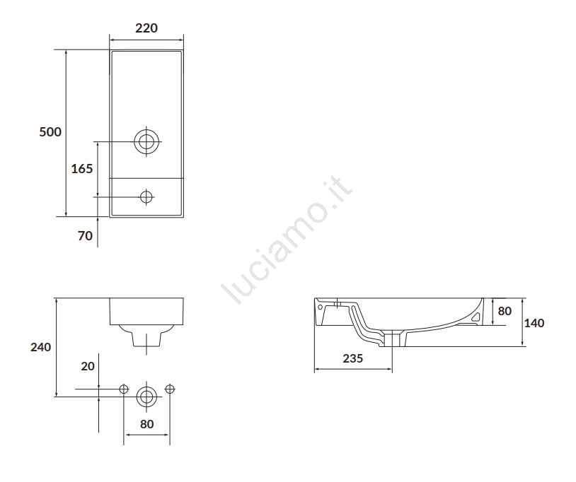 • Rubinetto e scarico per lavabo non inclusi nella confezione.