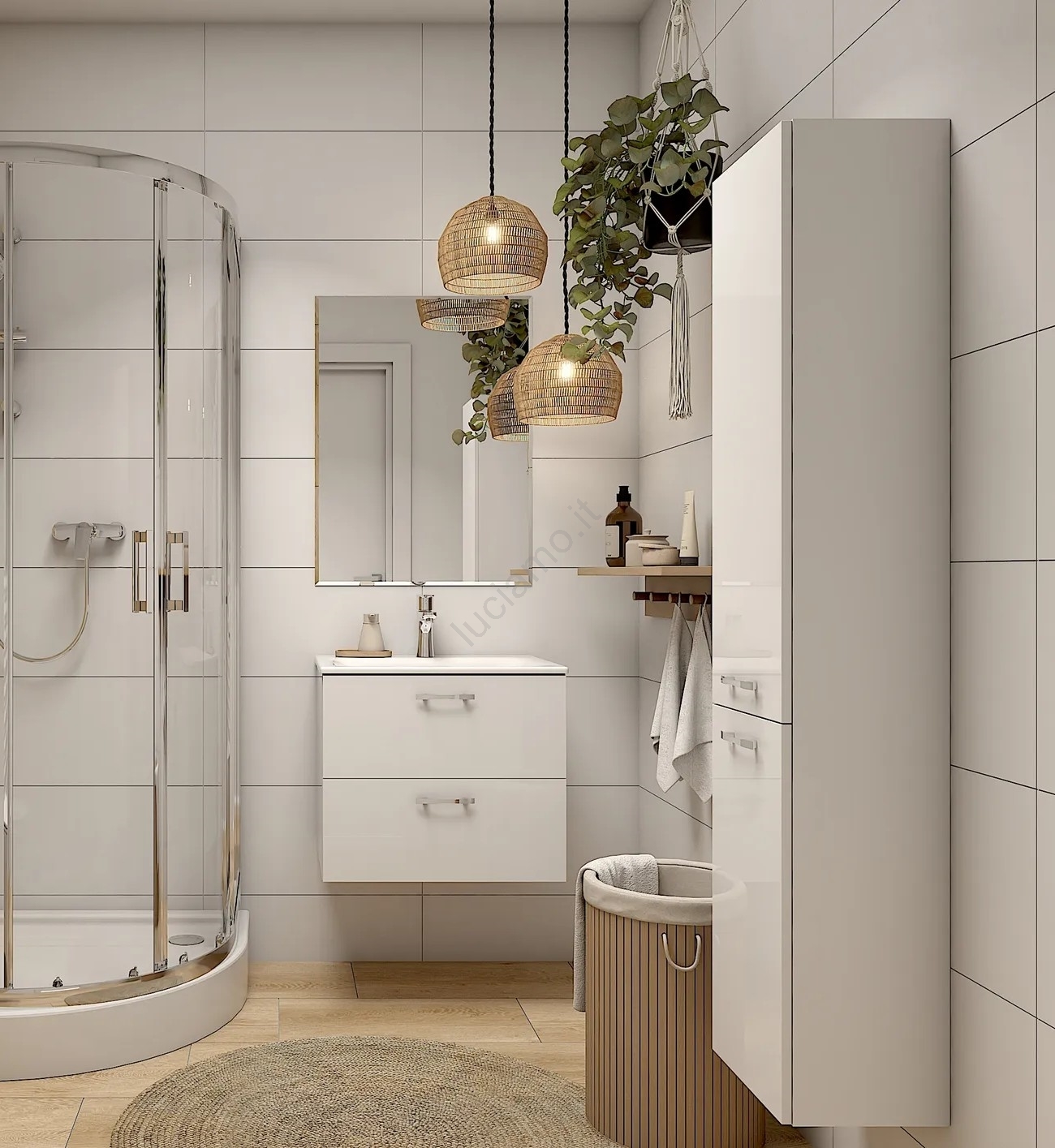 • Questo pensile si adatta perfettamente ai bagni moderni, offrendo un aspetto pulito e un utilizzo pratico dello spazio.