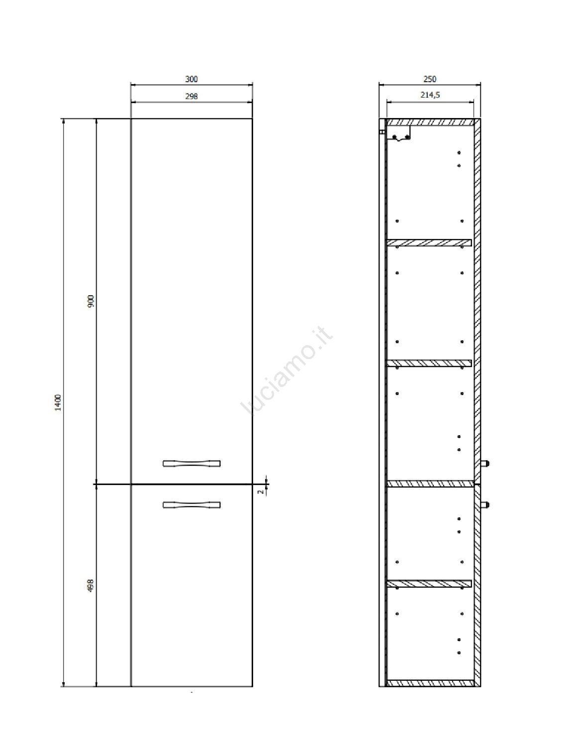 • L'armadietto è dotato di due ante con chiusura ammortizzata.