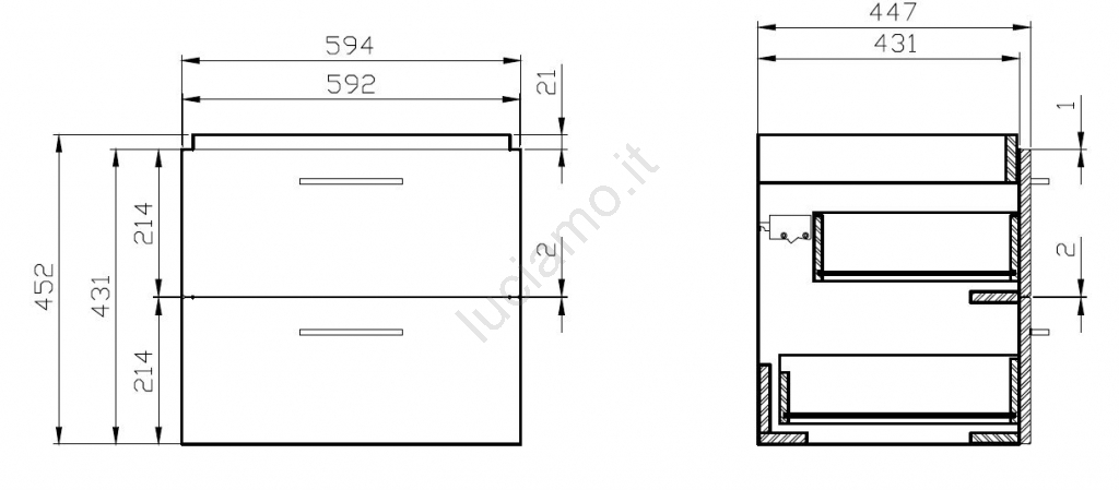 • Il mobile dispone di due ampi cassetti con chiusura ammortizzata e maniglie cromate.