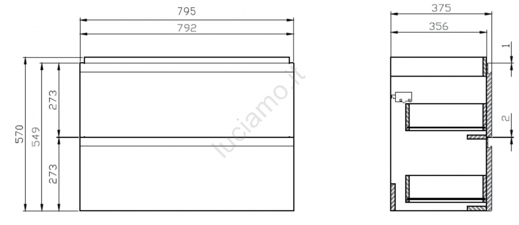 • Il mobile dispone di due ampi cassetti con chiusura ammortizzata e maniglie nascoste.