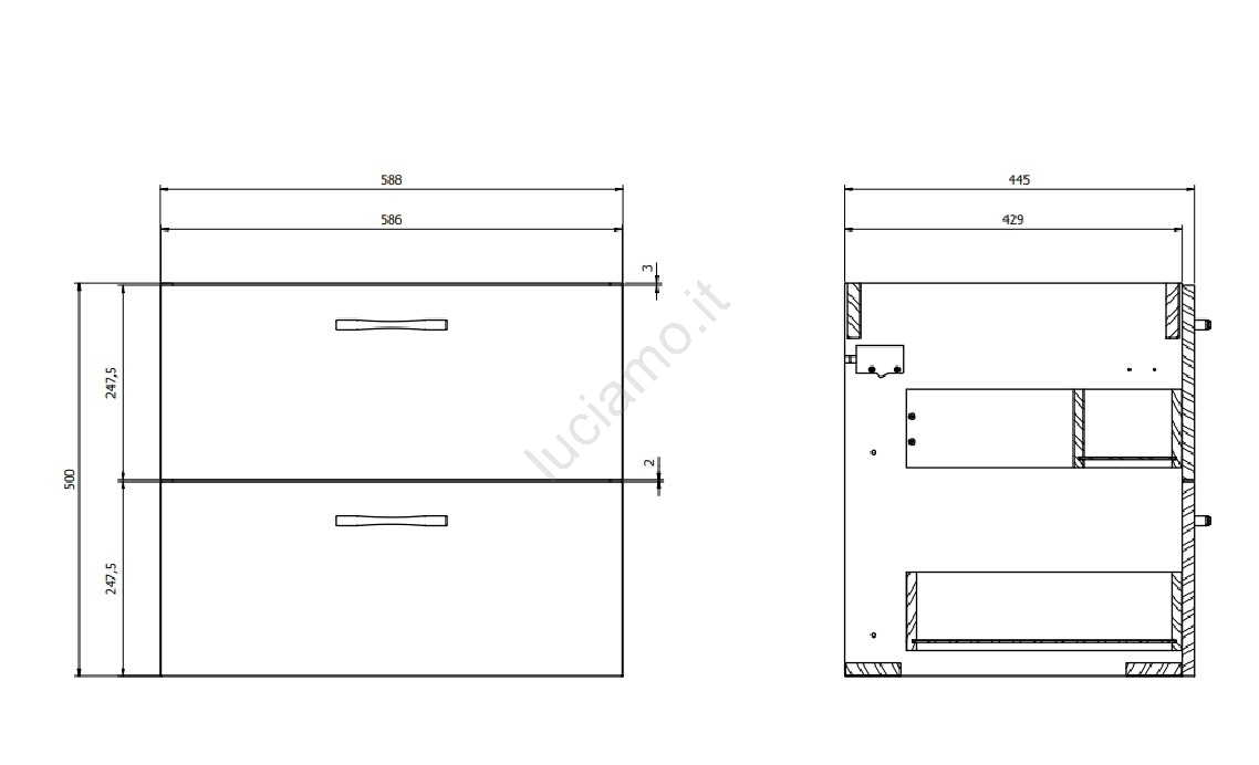 • Il mobile è dotato di due ampi cassetti con chiusura ammortizzata (soft-close).