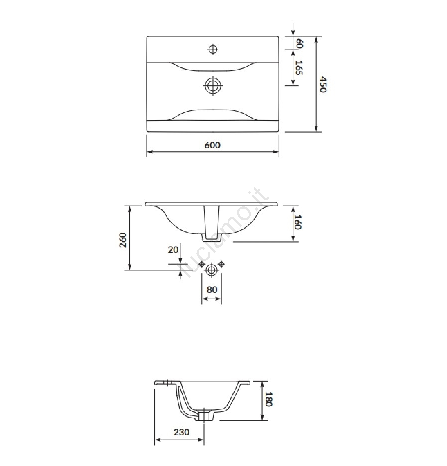 • Il miscelatore per lavabo non è incluso nella confezione.