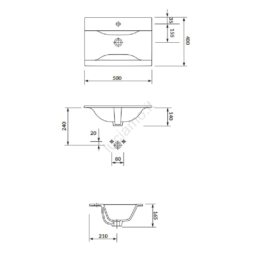 • Il miscelatore per lavabo non è incluso nella confezione.