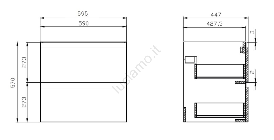• Il frontale e la struttura dell'armadietto sono realizzati in truciolato da 16 mm con finitura laccata bianca lucida.