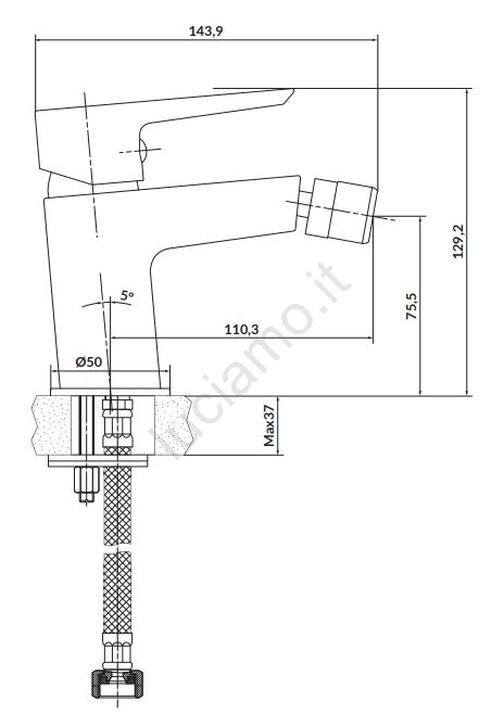 • Il rubinetto è inoltre fornito con tubi flessibili Eco EPDM della lunghezza di 40 cm.