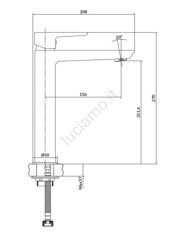 • Il scarico metallico a scatto con tubi di collegamento è incluso nella confezione.
