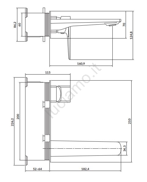 • Rubinetto da parete per lavabo ad installazione incassata.