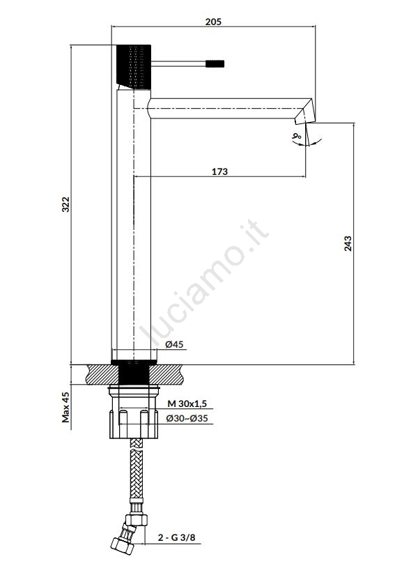 • I tubi di collegamento da 60 cm sono inclusi nella confezione.