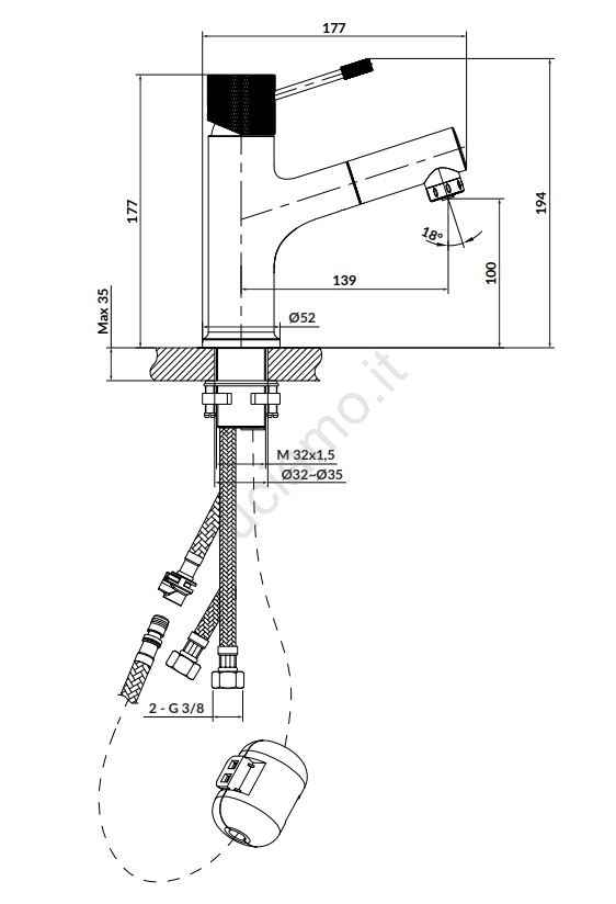 • Elemento di controllo: cartuccia ceramica da 35 mm.