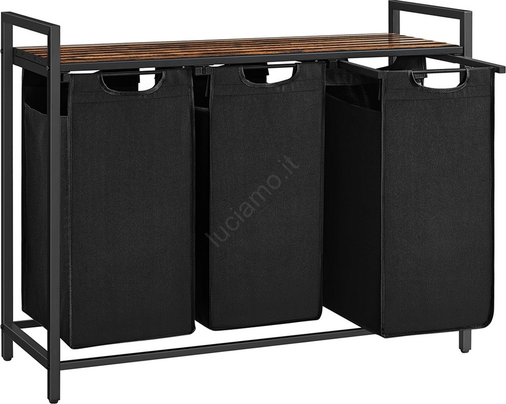 • 3 sacchi, 1 ripiano – Dividete il bucato in tre sacchi in tessuto (38 l per sacco) e riponete detersivi, ammorbidente e altri oggetti sul ripiano.