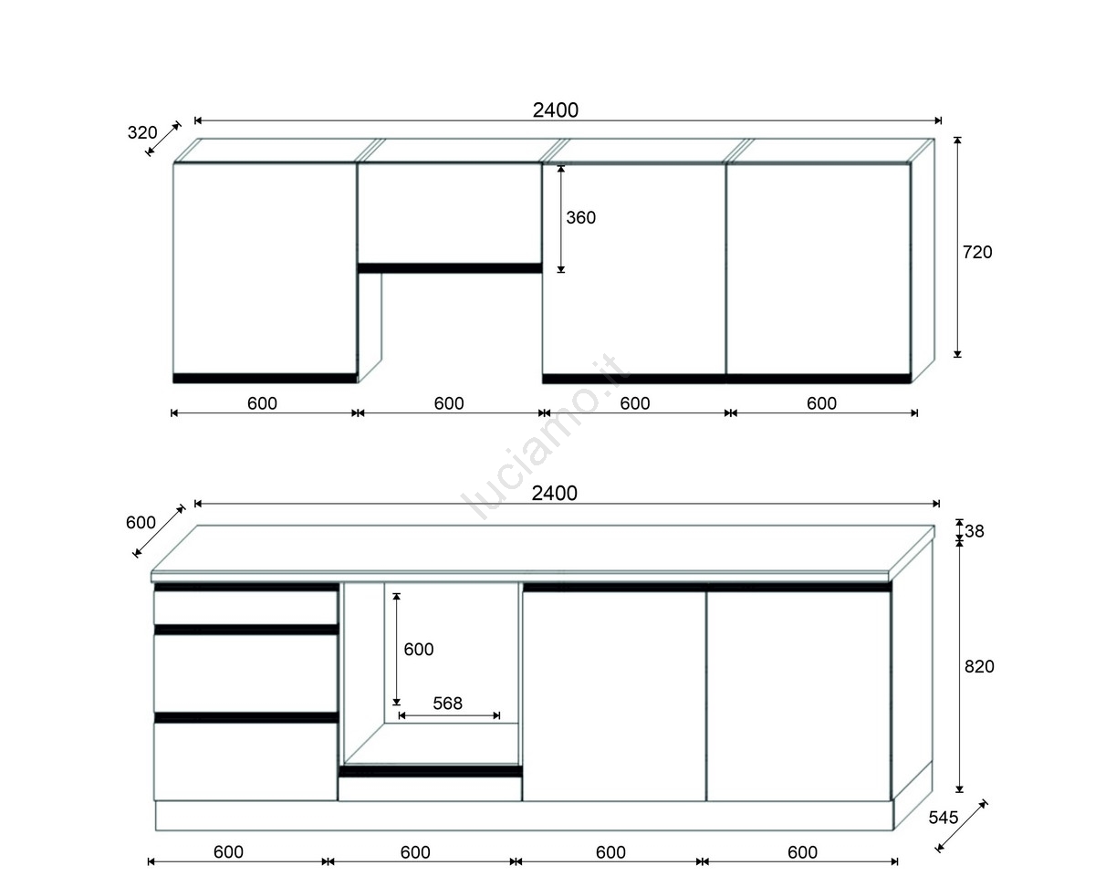 • Non sono inclusi elettrodomestici, il lavello né il rubinetto da cucina.