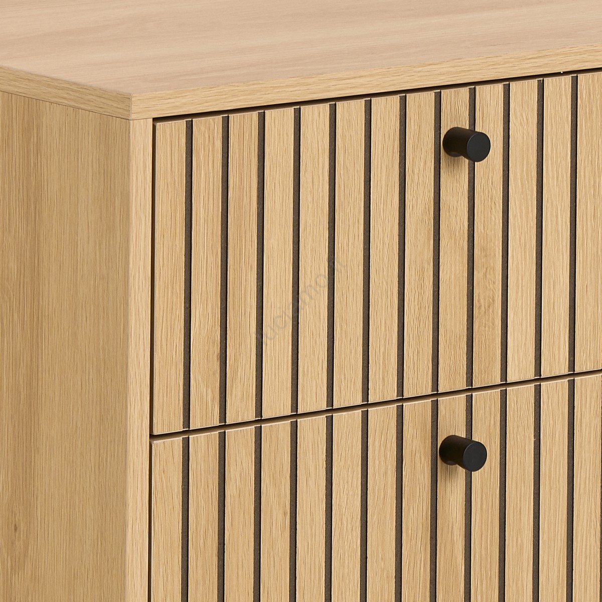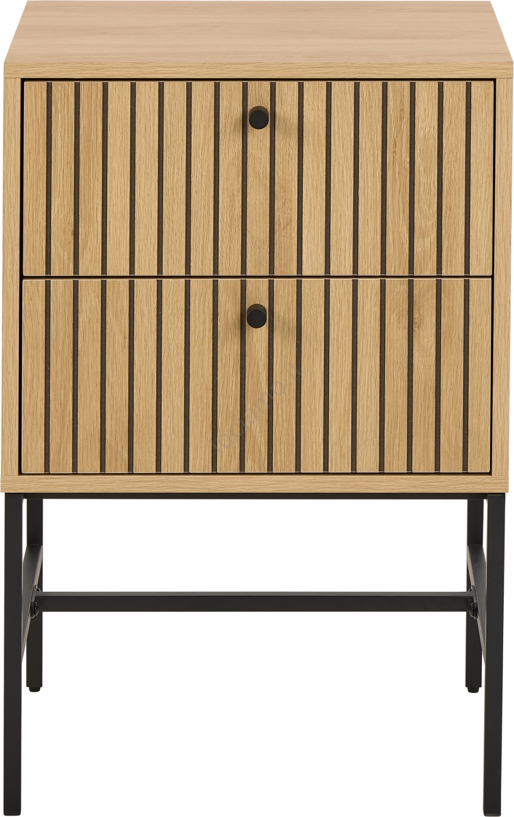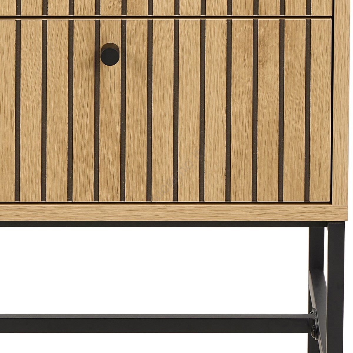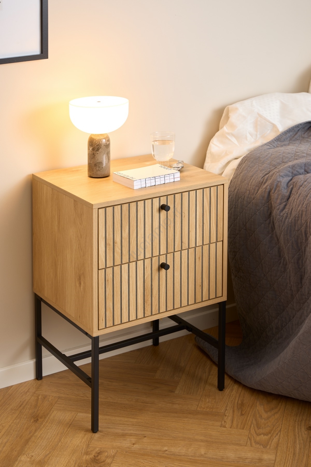 • Questo comodino in effetto rovere con frontale a lamelle dona alla tua casa stile e praticità.