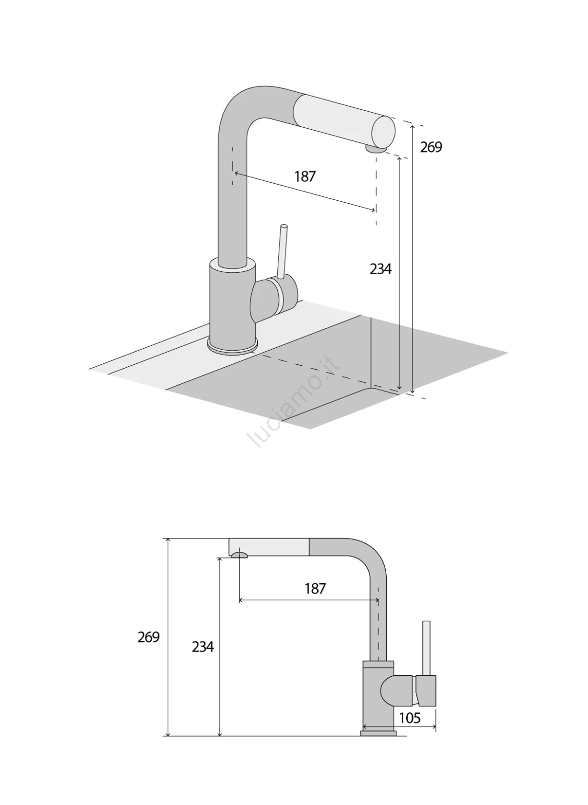 • Altezza totale: 269 mm.