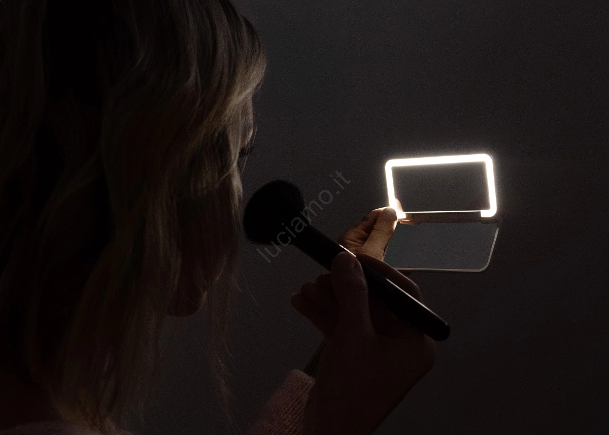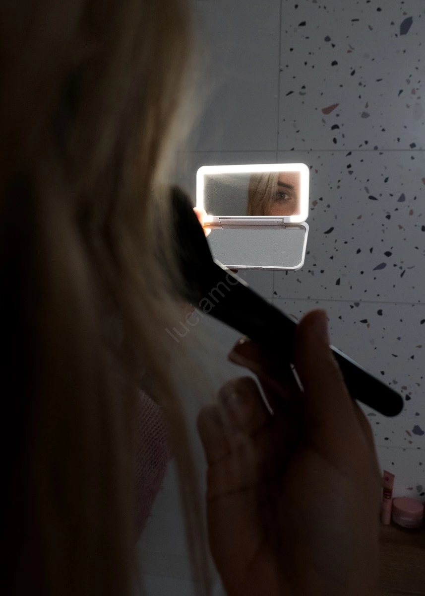 • Specchietto cosmetico tascabile con illuminazione LED.