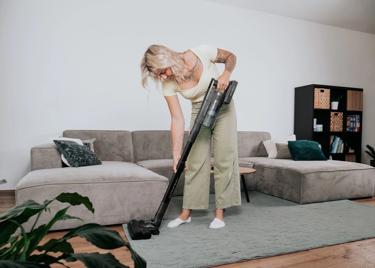 • Inoltre l'aspirapolvere resta in piedi da solo, così potete appoggiarlo comodamente in qualsiasi momento durante le pulizie senza dover cercare un sostegno.
