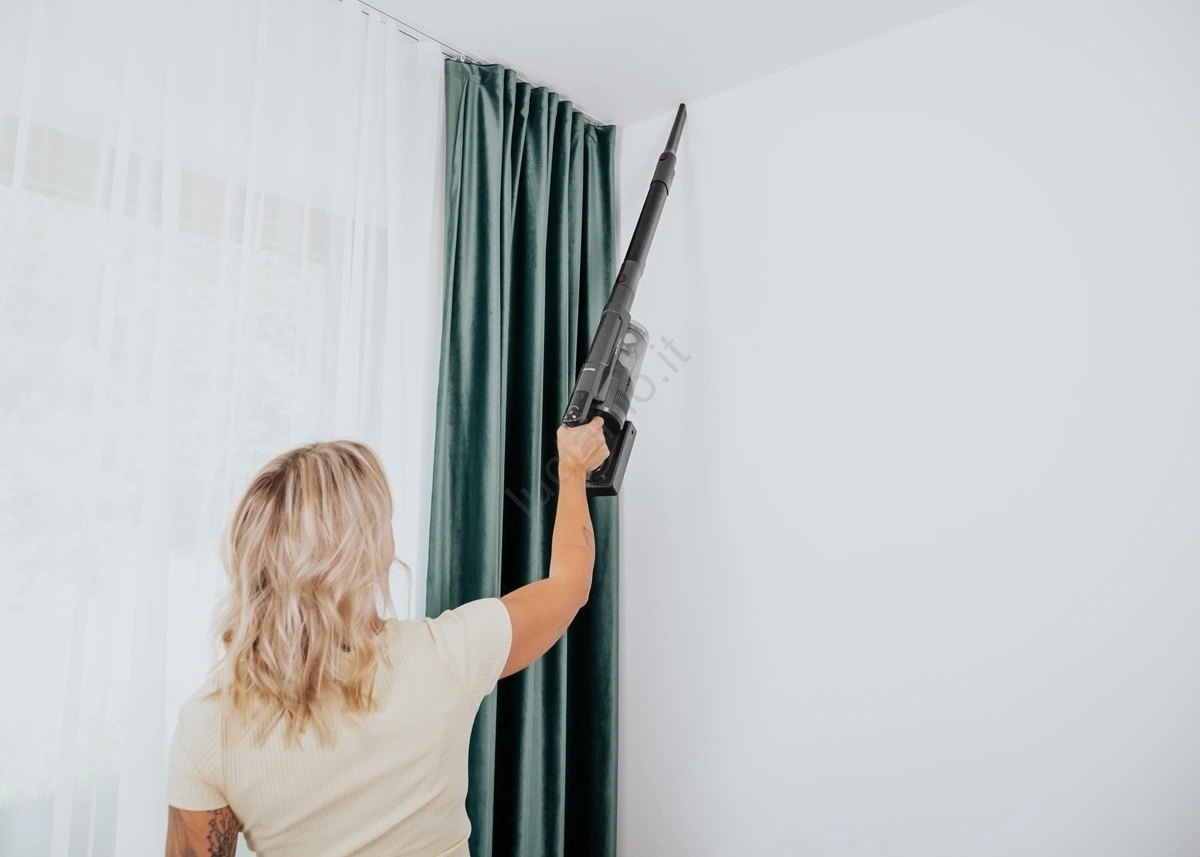 • Grazie alla batteria Li-Ion rimovibile da 2200 mAh raggiunge fino a 50 minuti di autonomia con una carica in modalità MIN, sufficiente per le normali pulizie di pavimenti duri.