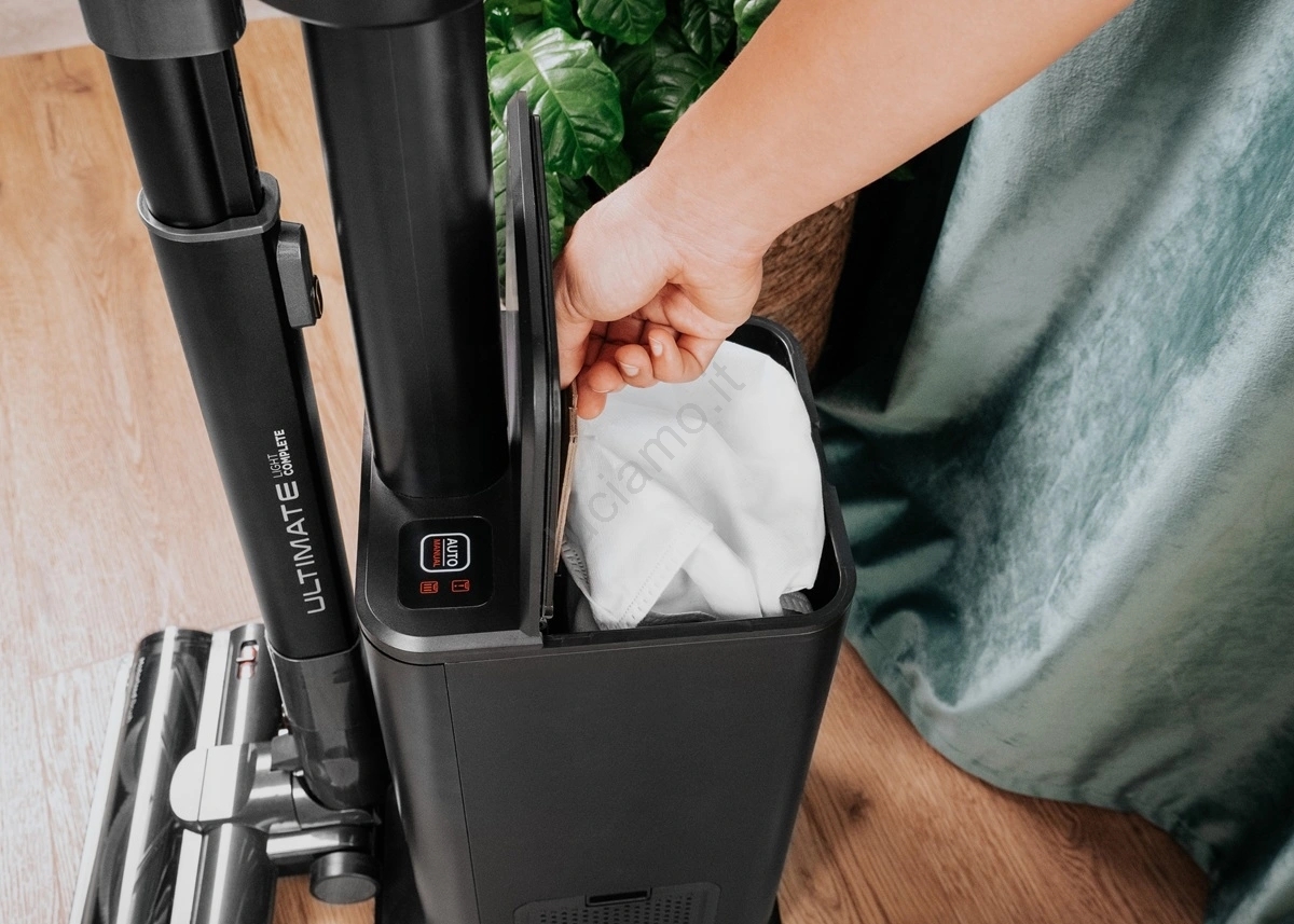 • La stazione multifunzione svuota igienicamente lo sporco nel sacchetto da 3,8 l, evitando che la polvere ritorni nell'aria.