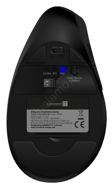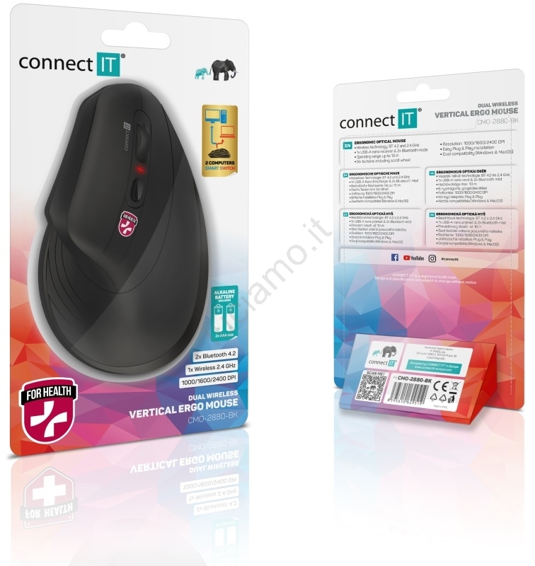 CONNECT IT CMO-2880-BK - Mouse ergonomico wireless Verti TriMode 1000/1600/2400 DPI 2xAAA nero
